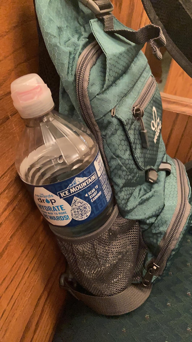 • Two 5.5"H x 3.5"W elastic-banded mesh water bottle pockets.